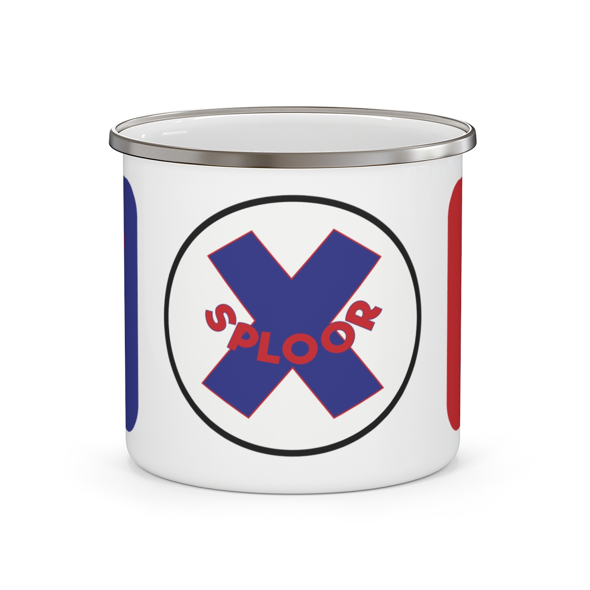 This 12-ounce, enamel-covered stainless steel mug shows off three of our favorite XSPLOOR logos.